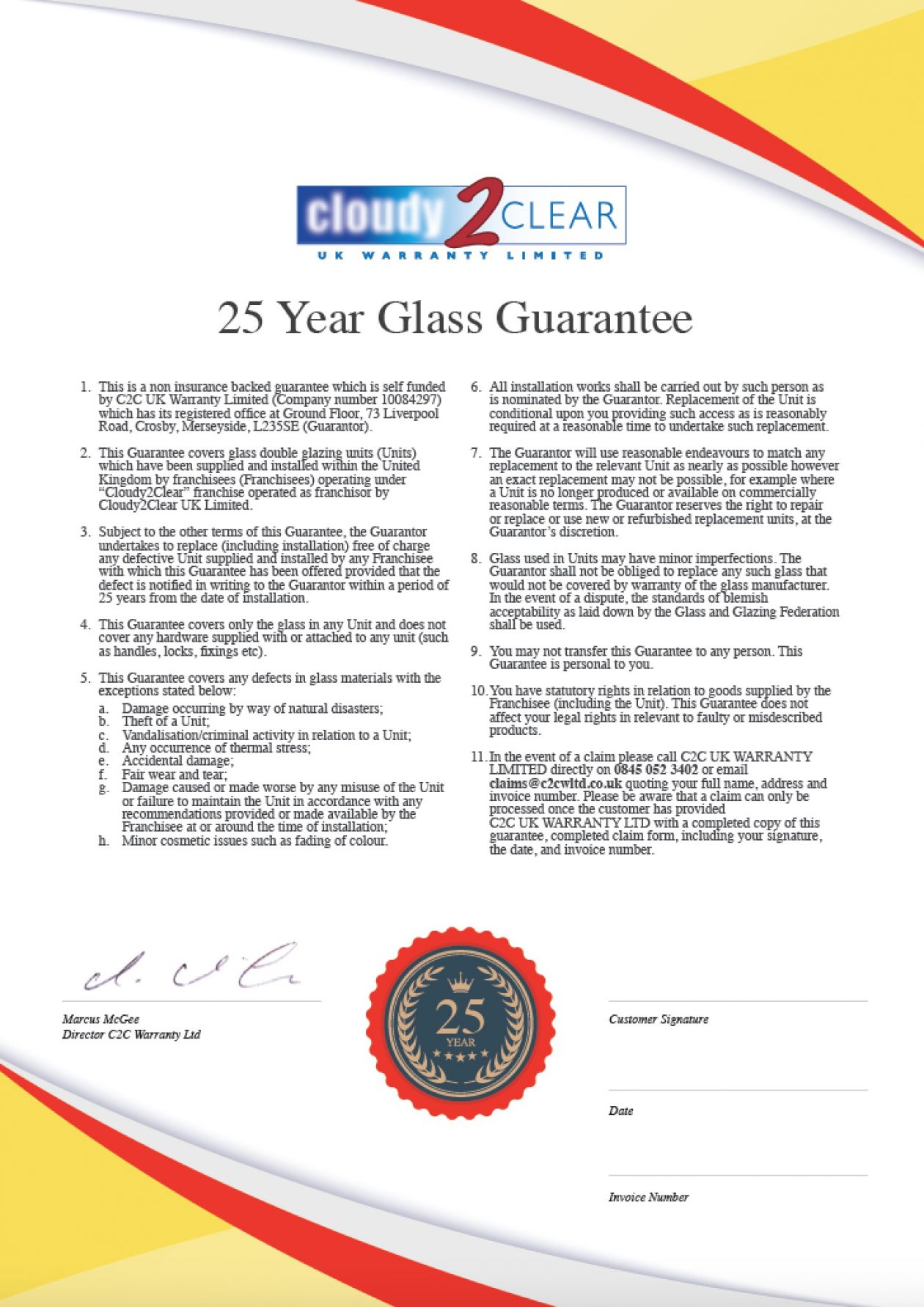 Please fill in the form below to claim on your Cloudy2Clear 25 year guarantee.